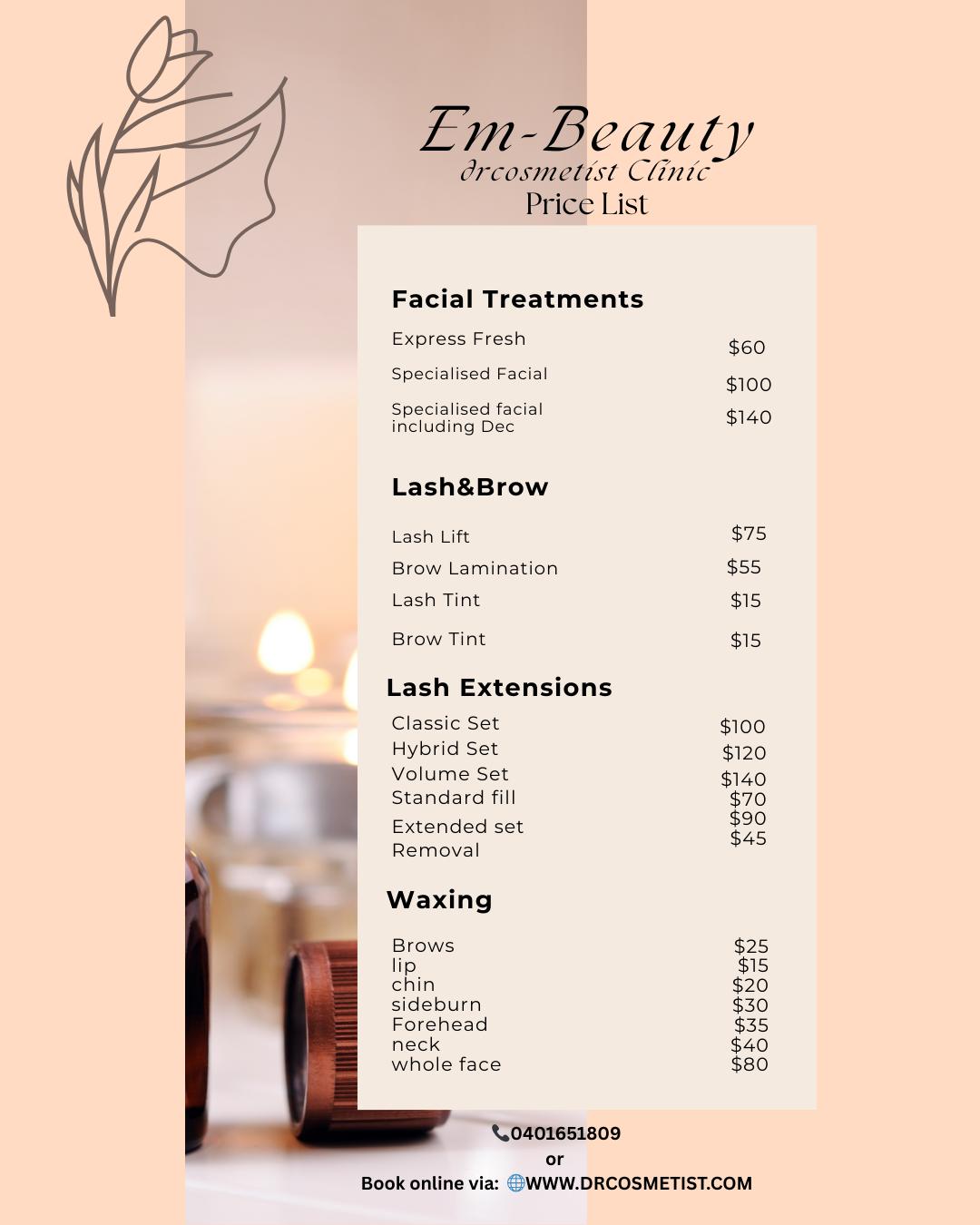 Looking to refresh and care for your skin? Emily offers customised facial experiences designed to support your skin’s natural balance. Whether your focus is hydration, dullness, or maintaining a smooth look , each treatment is tailored just for you.